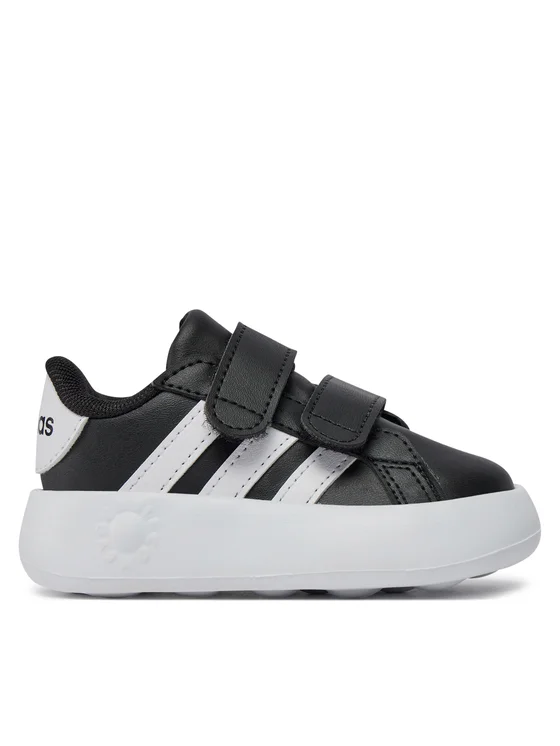 Открий обувките adidas Grand Court с двойно закопчаване на велкро, което улеснява обуването и събуването, а еластичната подметка от EVA пяна прави малчуганите доволни. Независимо дали пълзят, подпират се на мебелите или правят първите си стъпки, забавните цветове и класическите три ленти ще станат вдъхновение за живот, изпълнен с игри.