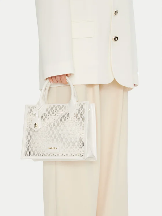 A Badura márkájú fehér táska elegáns kiegészítő, amely kiemeli bármelyik öltözékedet. Magas minőségű műanyagból készült, masszív szerkezettel rendelkezik, ami hosszú távon biztosítja a tartósságot és esztétikus megjelenést. A funkcionalitását növeli a levehető övtáska, amely tökéletes apró tárgyak tárolására, valamint a levehető pánt, amely lehetővé teszi a táska különböző viselési módjait. Ideális táska azoknak a nőknek, akik értékelik a stílus és a praktikusság ötvözetét. Tökéletes választás mindennapi használatra és különleges alkalmakra.