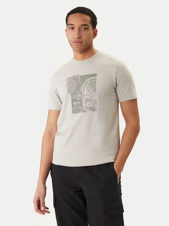 BOSS T-shirt Imprint 50556007 Bež Regular Fit
