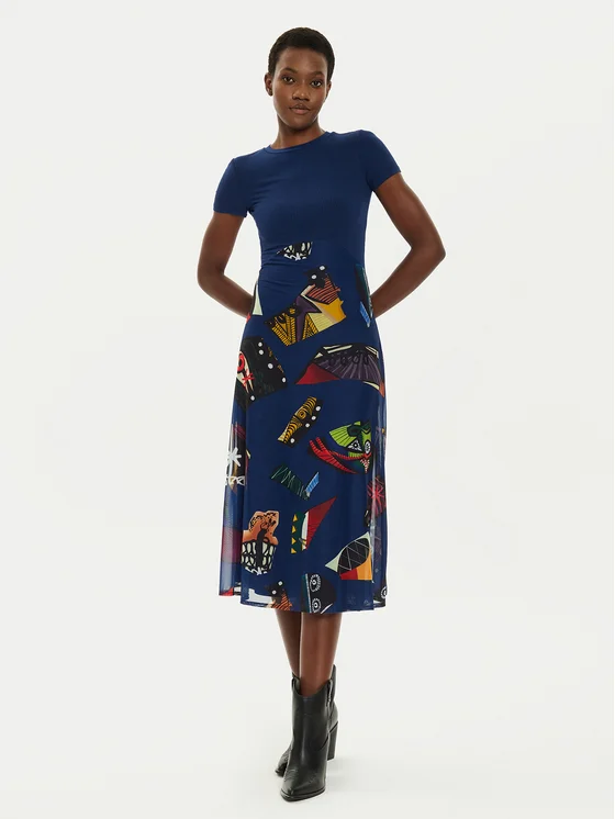 Desigual Haljina za svaki dan MONSIEUR CHRISTIAN LACROIX Lin 24SWVK47 Plava Regular Fit