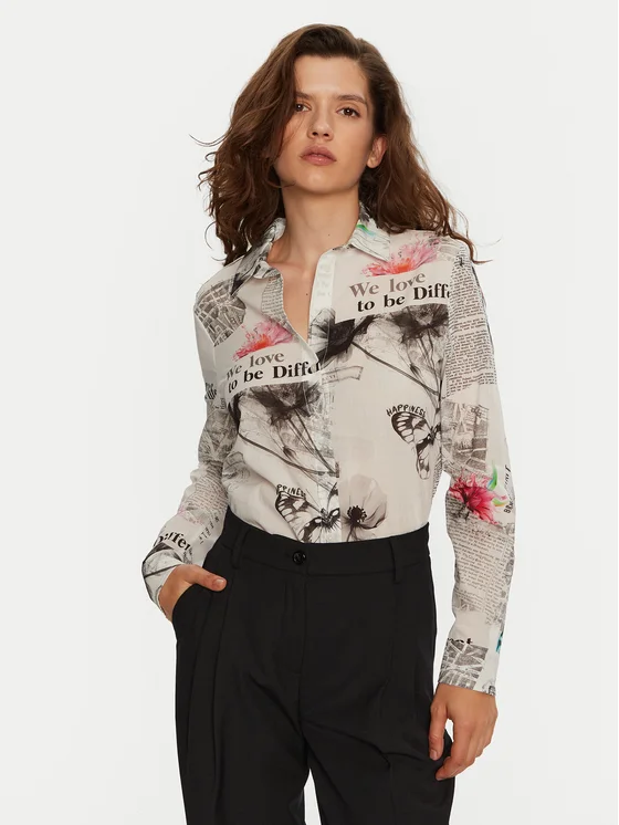 Desigual Košulja Nara 24WWCW20 Écru Regular Fit