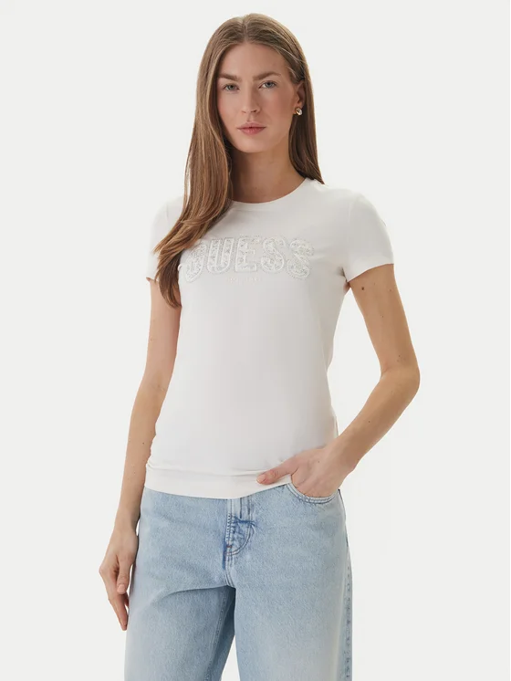 Guess T-shirt W5GI04 J1314 Bijela Slim Fit