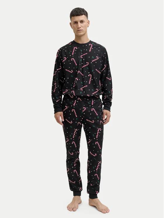 Jack & Jones Pidžama Tristan 12285375 Crna Loose Fit