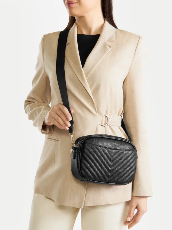 Torba Jenny u klasičnoj crnoj boji je elegantan dodatak koji spaja stil i funkcionalnost. Izrađena od visokokvalitetnog sintetičkog materijala, karakterizira se izdržljivom, čvrstom strukturom koja osigurava dugotrajnu upotrebu. Zahvaljujući mogućnosti podešavanja duljine remena, torba se savršeno prilagođava tvojim potrebama, a praktična ručka za rame jamči udobnost nošenja. Pretinac s patentnim zatvaračem štiti sadržaj, a dodatna odvojiva torbica i mjesto za novčanik povećavaju njezinu funkcionalnost. To je izvrstan izbor za žene koje cijene eleganciju i praktičnost.