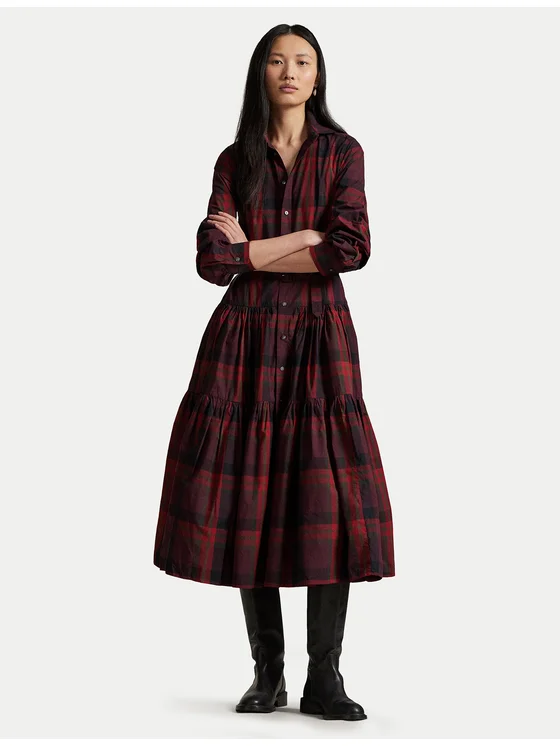Polo Ralph Lauren Haljina košulja 211A13260001 Tamnocrvena Regular Fit