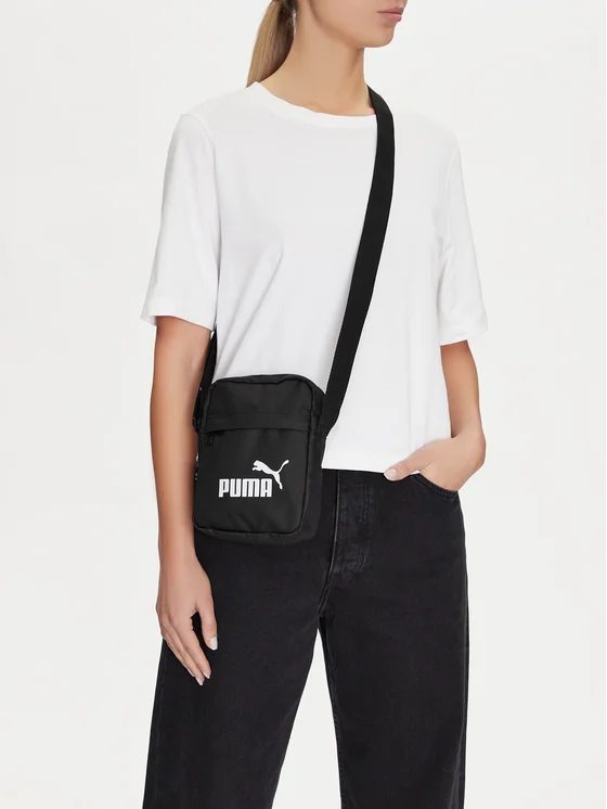 Mladi Puma torbica u klasičnoj crnoj boji idealan je izbor za mlade, aktivne osobe koje cijene sportski stil i funkcionalnost. Izrađena od izdržljivog tekstilnog materijala, karakterizira se lakoćom i trajnošću, što je čini savršenom za svakodnevnu upotrebu. Pretinac na zatvarač omogućuje brz i jednostavan pristup sadržaju, istovremeno osiguravajući njegovu sigurnost. Univerzalni dizajn čini torbicu prikladnom za žene i muškarce. Ova praktična torbica savršeno nadopunjuje svaku sportsku kombinaciju, spajajući udobnost s modernim izgledom.