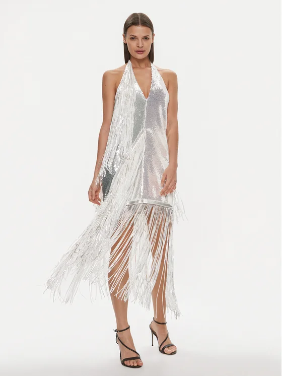 ROTATE Koktel haljina 111604 Bijela Slim Fit
