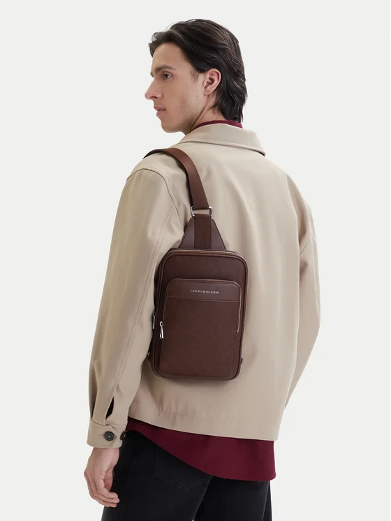 Tommy Hilfiger Crossover torbica Th Flag Monogram Sling Pack AM0AM14140 Smeđa