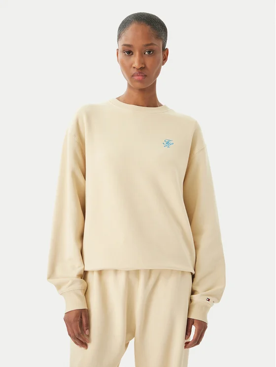 Tommy Hilfiger Majica dugih rukava Logo Embroidery WW0WW48724 Svijetlo bež Relaxed Fit