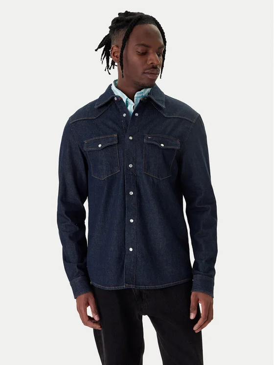 Tommy Jeans traper košulja Western DM0DM23022 Tamnoplava Regular Fit