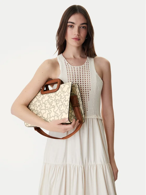 Дамската чанта TOUS е предложение, което съчетава модерен дизайн с практичност. Изработена от висококачествен синтетичен материал, тя се характеризира с издръжливост и елегантен външен вид. Твърдата ѝ конструкция позволява да запази формата си дори при ежедневна употреба, което я прави надежден спътник, който ще остане с теб за дълго време. Допълнителната, откачаща се презрамка увеличава функционалността, позволявайки ти да носиш чантата по различни начини – удобно ще я приспособиш към своя стил и нужди. Избери качеството на реномираната марка TOUS!